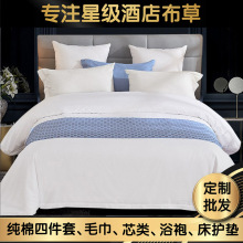 五星级酒店宾馆民宿布草套件床上用品贡缎纯棉被套床单厂家批发