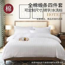 酒店被套60支全棉缎条厂家直销 宾馆酒店四件套批发漂白平纹被套
