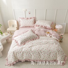 韩版花边印花全棉床单四件套1.8m床纯棉双人小清新被套单人公主风