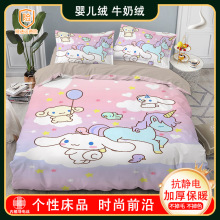 三丽鸥玉桂狗牛奶绒四件套定制卡通保暖毛绒床品被套枕套床笠厂家