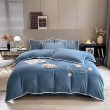 厂家批发新款牛奶绒加厚四件套绣花套件冬季家用保暖法莱绒双面