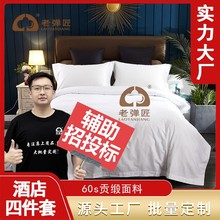 酒店民宿床上用品四件套六件套酒店贡缎纯棉布草床上用品批发