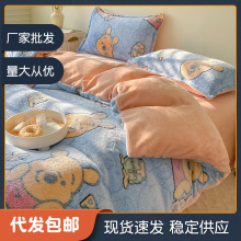 厂家供应牛奶绒四件套双面雪花绒被罩卡通床品秋冬保暖三件套代发