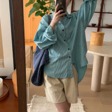 卢浮春季新品韩国宫廷复古条纹衬衫翻领宽松慵懒品质舒适上衣女
