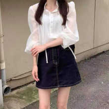 【现货】2023春季韩国东大门新款时尚设计感复古木耳边上衣衬衫女