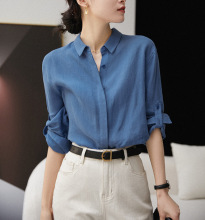 秋季新品18姆米女士套头真丝衬衣素绉缎 跨境100桑蚕丝休闲上衣